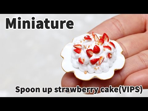 미니어쳐 떠먹는 딸기 케이크 만들기 - 빕스(VIPS) 발그레한 딸기 세트 * Miniature